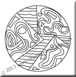 This month’s mandala reminds us that our lives are a journey…weaving in, out and around in all manner of directions. We explore one area for awhile, then we spot another area to explore following that path where ever it leads us, and so on. We forget that until we move forward we’ll miss the opportunities that are up ahead…even if it looks like we’re moving backwards.