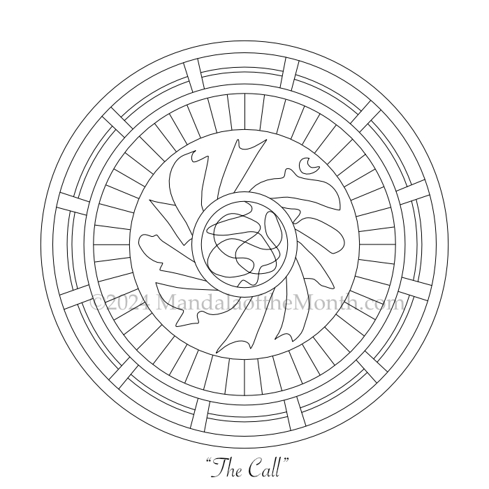 I’ll be coloring this mandala once a week throughout the month, as a way to address “the call” in the different areas of my life that I wrote about for Step 1. I’ll be posting my colorings along with “my callings” on the MandalaoftheWeek.com